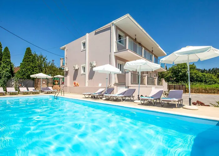 Com piscina ao ar livre para relaxamento dos hóspedes, a Villa Maria Sidari Karousádes está localizada 2.7 km de Canal d'Amour. Com acesso a terraço, esta vila de Ágios Ioánnis está localizada a uma distância de aproximadamente 10 minutos a pé da Praia de Sidari.